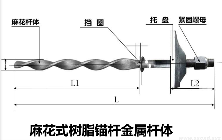 麻花式樹脂錨桿( headed twist bars ) 在金屬桿體端部加工成一定規格的左旋麻花形錨頭, 尾部加工成可上螺母的螺紋。
