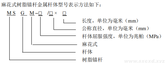 其中:MS指的是樹脂錨桿,G是桿體,M是麻花式,235是桿體屈服強度,單位為MPa,16是直徑,1800是長度。